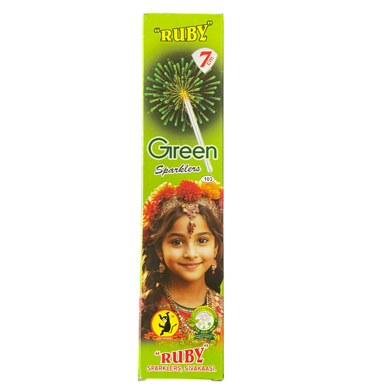 Box of 10 green 7cm sparklers, emitting soothing green light. A compact festive item.